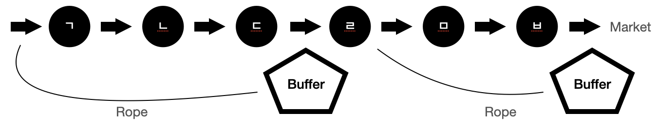 마이크로소프트에서는 Kanban System 적용 전 드럼-버퍼-로프 방식을 사용했다