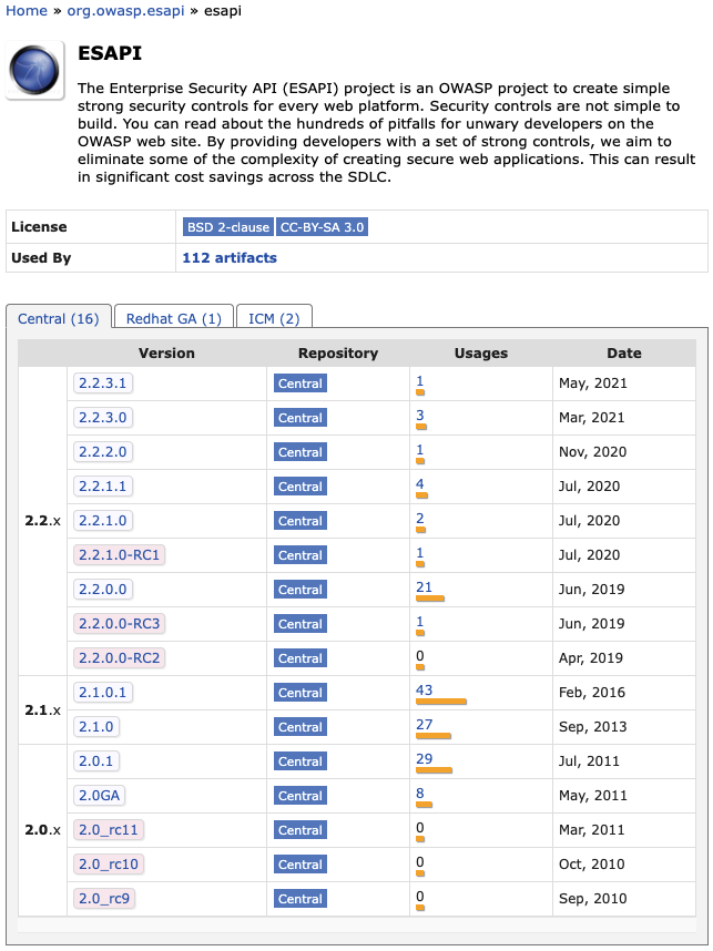 implementation group: 'org.owasp.esapi', name: 'esapi', version: '2.2.3.1'